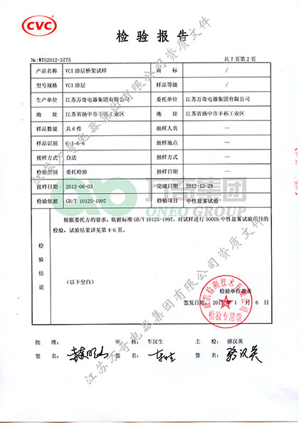 節(jié)能橋架選用不銹鋼材質,使產(chǎn)品在耐腐蝕性能、使用壽命和性價比方面都是無以倫比的。高耐腐VCI雙金屬無機涂層技術應用在橋架表面處理上,使橋架的抗腐性能大幅度提高,達到高長效抗腐作用,經(jīng)檢測機構廣州威凱檢測技術有限公司5000h鹽霧試驗,無腐蝕現(xiàn)象。彌補了熱浸鍍鋅無機涂層抗腐蝕性能不足的缺陷,大大延長了橋架的使用壽命,經(jīng)對比檢驗數(shù)據(jù)表明,該涂層的抗腐性能是熱浸鍍鋅的50倍以上。新國標GB/T 23639-2017《節(jié)能耐腐蝕鋼制電纜橋架》再次提高了高耐腐VCI雙金屬無機涂層的抗腐蝕性能指標,同時也提高了噴塑噴漆等有機涂層的酸堿性浸泡試驗的標準要求。