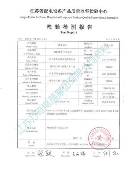 節(jié)能耐腐蝕鋼制電纜橋架(以下簡稱節(jié)能橋架)是江蘇萬奇電器集團有限公司(原鎮(zhèn)江萬奇電器設備有限公司)自主創(chuàng)新研制開發(fā)的新一代具有高科技含量的產(chǎn)品。該產(chǎn)品具有高強度結構、耐腐蝕、散熱節(jié)能等特性,產(chǎn)品及工藝先后獲得國家知識產(chǎn)權局發(fā)明、實用新型和外觀設計二十項專利證書,通過江蘇省科技成果鑒定,并獲得了江蘇省高新技術產(chǎn)品稱號,被列為省火炬計劃,通過了CQC電纜橋架節(jié)能產(chǎn)品認證,被評為國家重點新產(chǎn)品。產(chǎn)品經(jīng)多年使用實踐,技術先進、質量可靠、穩(wěn)定,具有較高的經(jīng)濟效益和社會效益。